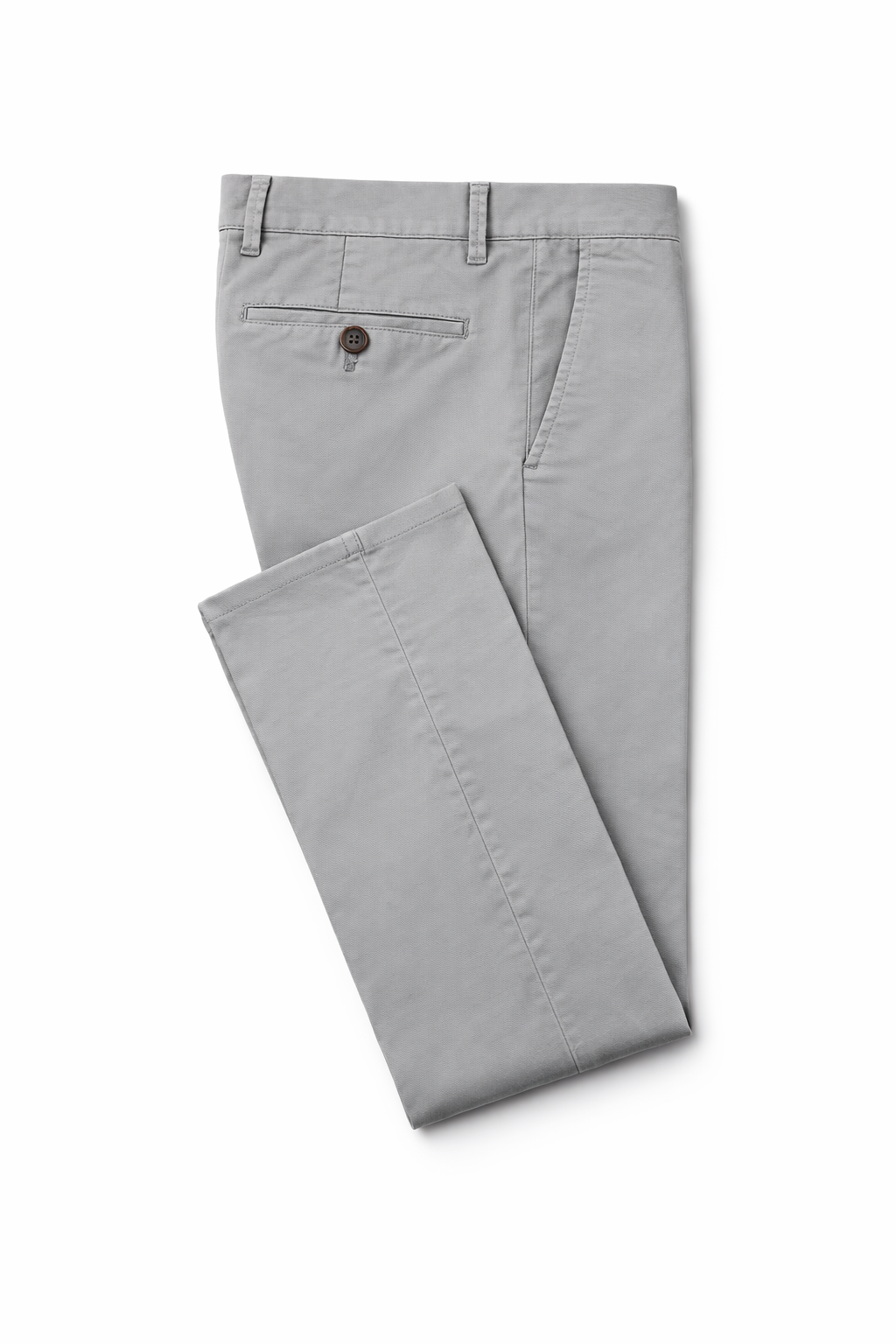Elevate your casual style with our Light Grey Washed Chinos. Crafted from 100% cotton, these versatile classics offer both comfort and durability. With a tapered fit, flat front, and belt loop for a sleek look, and the added bonus of stretch fabric, they're perfect for any occasion. Easy to care for with a simple machine wash, these chinos are a must-have for your wardrobe.