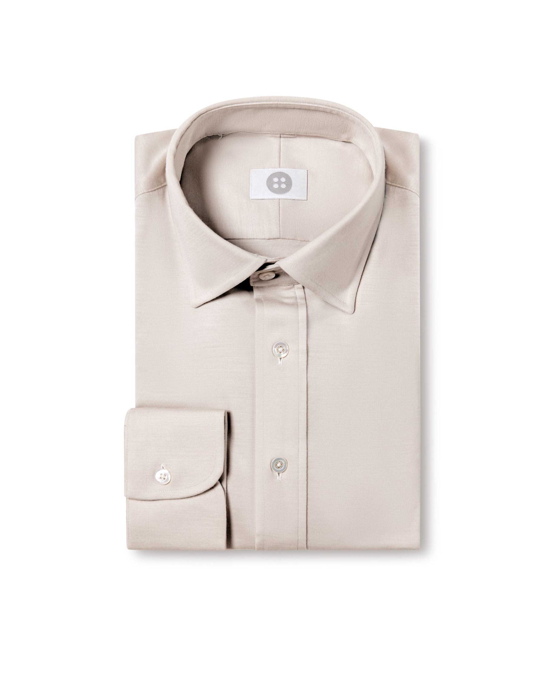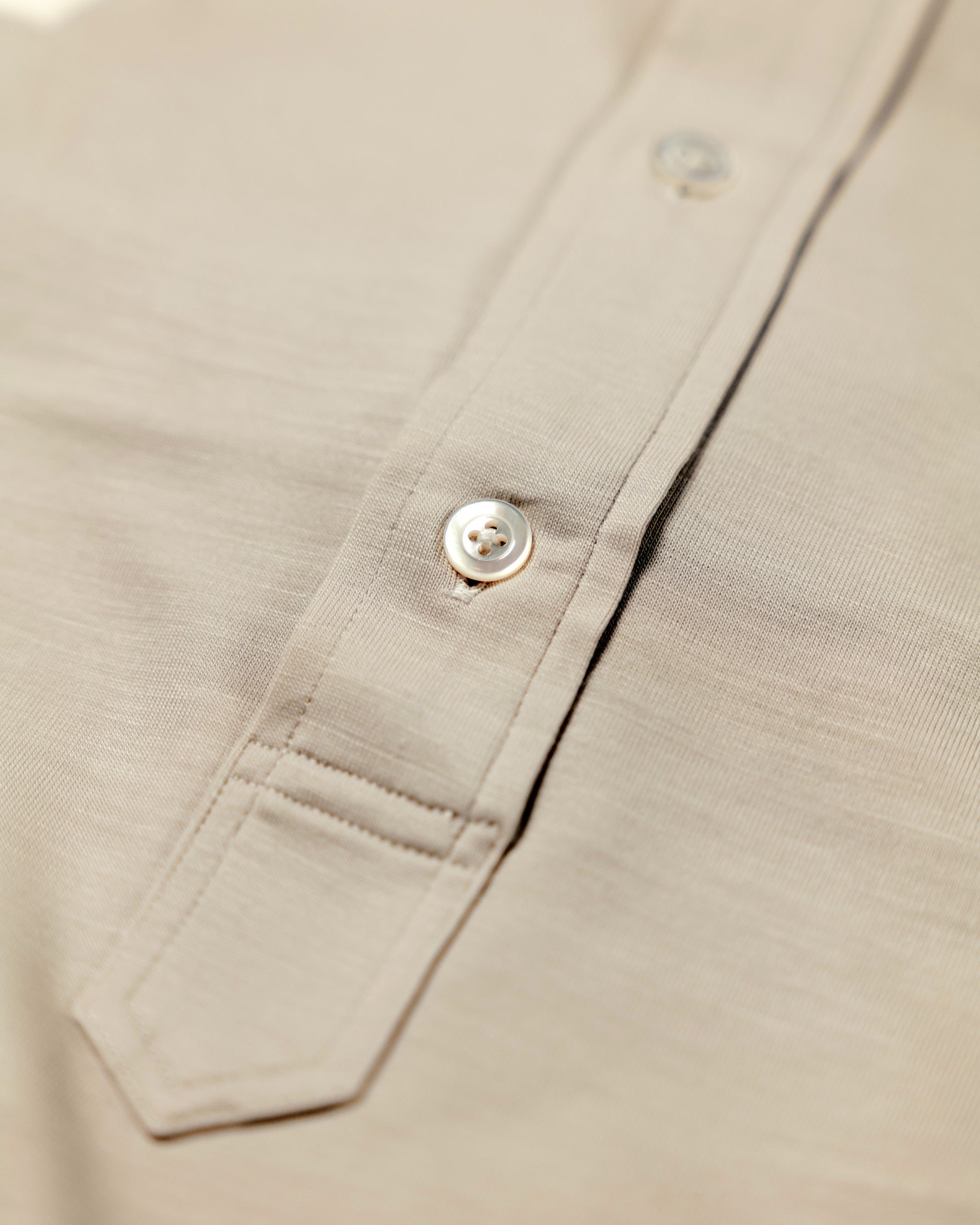 Crafted from 100% premium wool jersey, this stone popover shirt offers a refined balance of softness and structure. Naturally breathable with gentle stretch, the fabric delivers comfort against the skin while maintaining a clean, tailored silhouette.