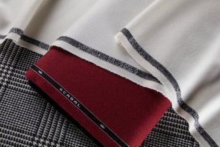 Scabal textiles are renowned for their sumptuous feel, excellent craftsmanship, and timeless elegance, representing the pinnacle of sartorial finesse. Whether it's a superbly cut suit, a luscious jacket, or a pristine shirt, Scabal textiles ooze sophistication and distinction. Scabal's vast selection of premium fabrics, ranging from fine wools to exquisite silks, enables us to design personalised clothing that not only fit well but also reflect our clients' individual style and personality. Discover the pinnacle of luxury with our handmade creations made solely from Scabal textiles.