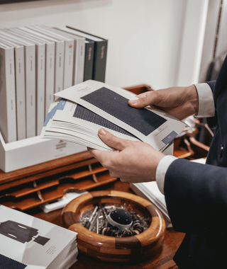 From traditional wool to silk and cashmere blends derived from the top Italian fabric houses. Our customisation experts will gladly assist you in selecting the most stunning textiles from a wide choice of colours and designs.